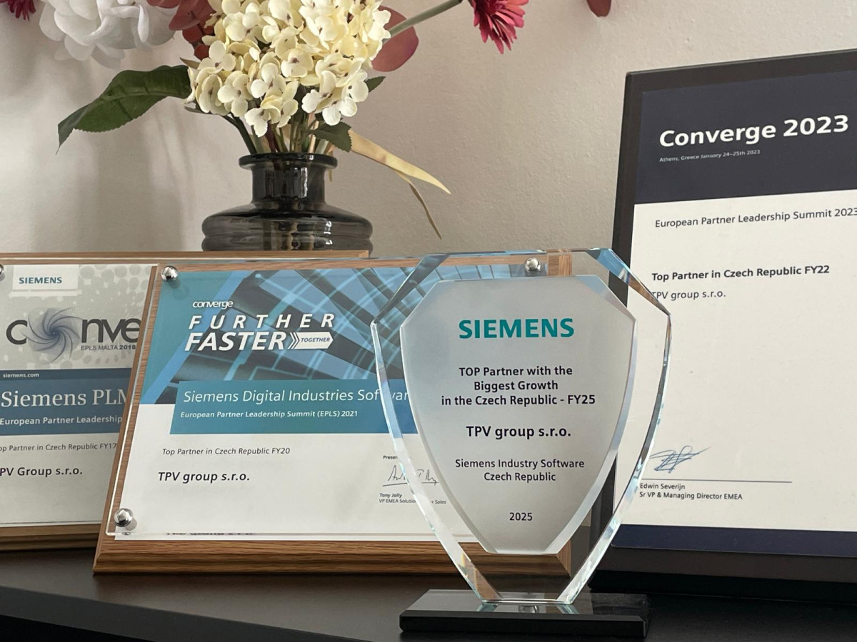 Během konání akce bylo zástupcem společnosti SIEMENS Industry Software panem Jaroslavem Haltmarem předáno naší společnost TPV group s.r.o. ocenění TOP PARTNER roku 2017 v České republice.